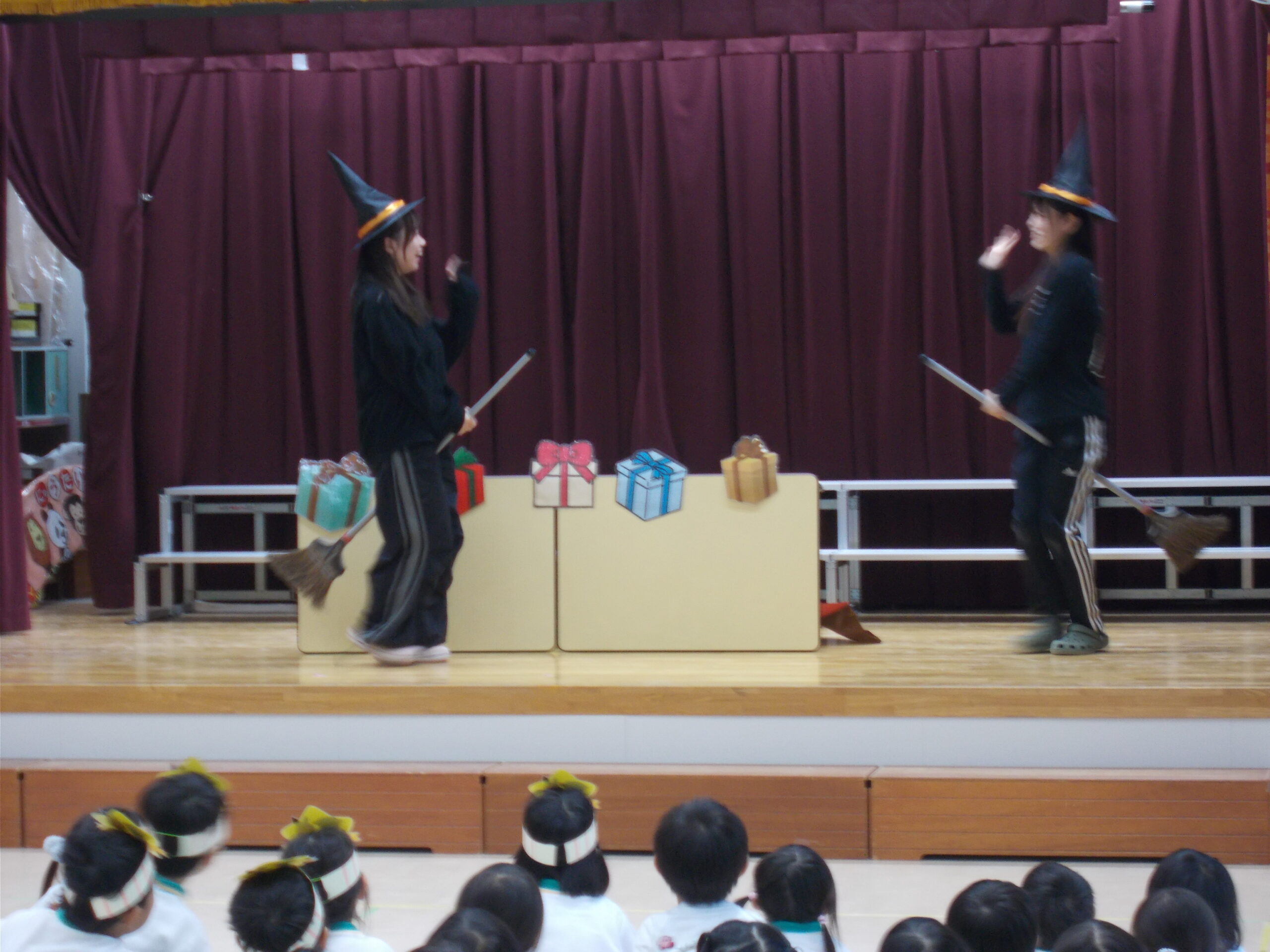 魔女の登場です。子どもたちの「トリック・オア・トリート!」の