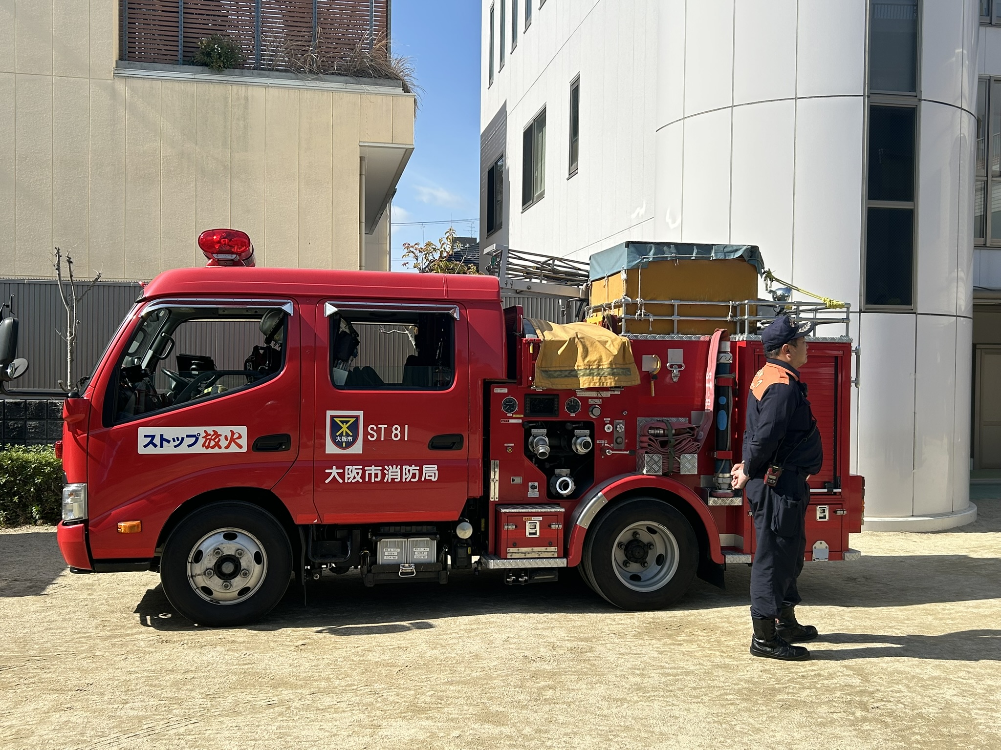 今回の消防訓練は都島消防署の方にお越しいただいて、