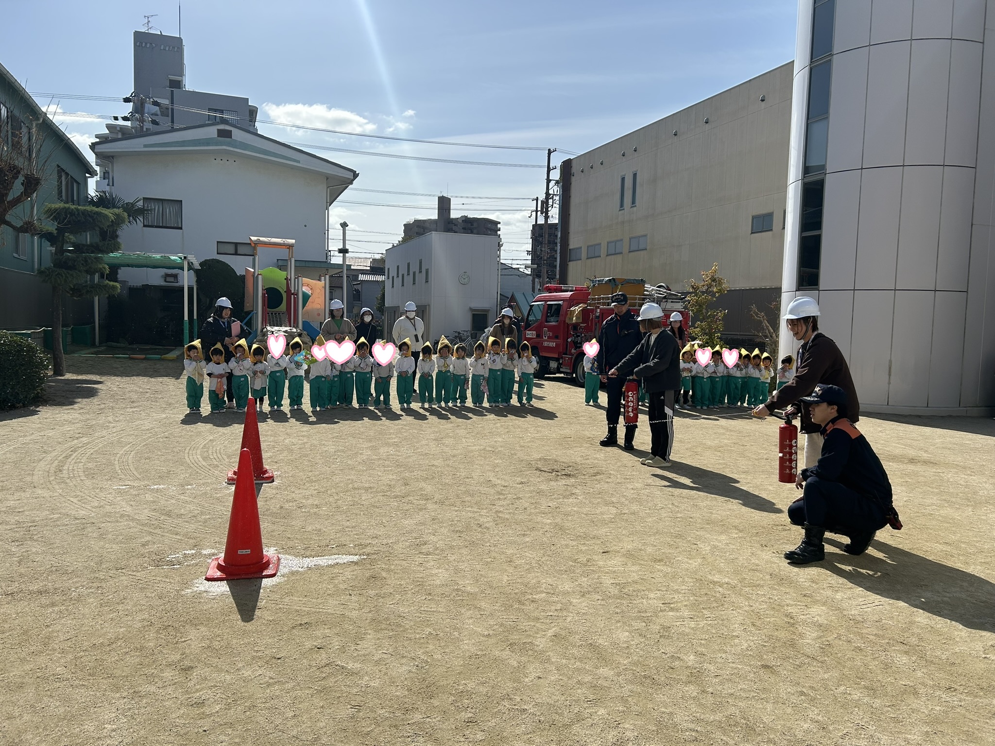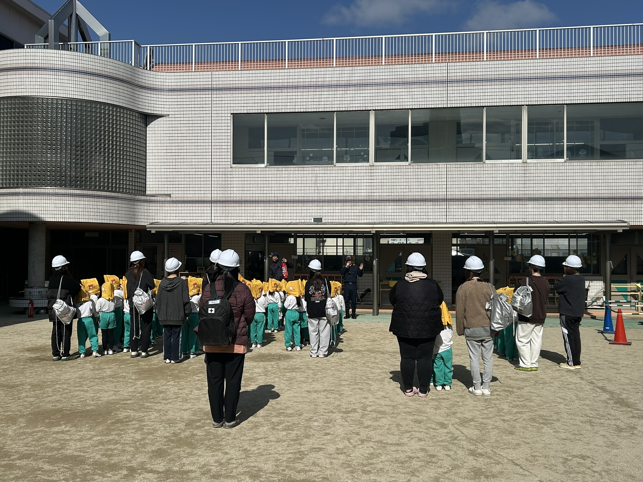 みんな素早く、静かに園庭に避難することができて、